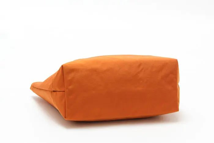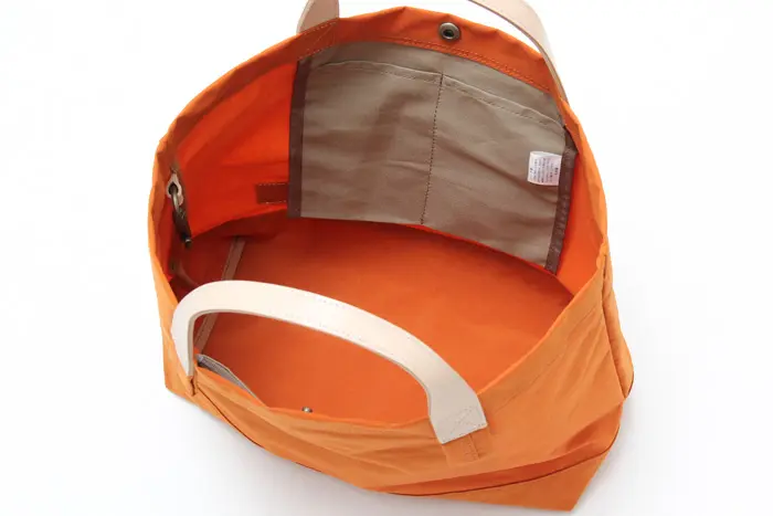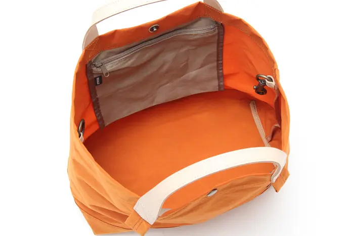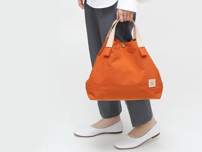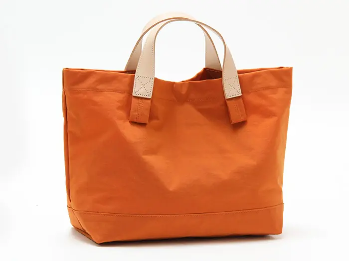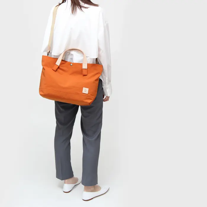 塩縮加工を施したナイロン素材を使用。繊維を縮ませることで生まれる細かな凹凸とシボ感が、ユーズドライクな表情を演出します。マットで落ち着いた質感ながら、ハリとコシがあり型崩れしにくいのも魅力。軽さと丈夫さを兼ね備え、荷物を入れなくても自立する扱いやすい素材です。