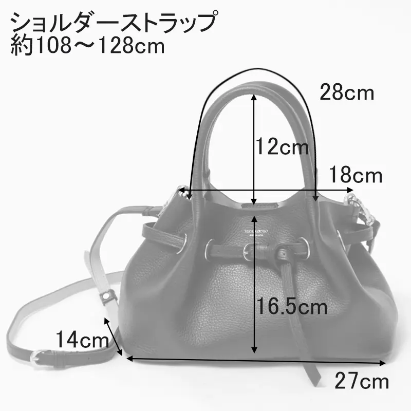 VIOLAd'oro(ヴィオラドーロ)の人気シリーズ「TRERO トレロ」から、大人の日常に寄り添うミニバッグ。 ゴールドのハトメとふっくらしたフォルムが、洗練された印象を演出。広めのマチで、長財布やポーチ、 500mlのペットボトルも横向きに収まり、普段使いから通勤まで幅広く活躍。オールレザーのミニマルな佇まいで、卒入学式など大切な日の装いにも最適です。