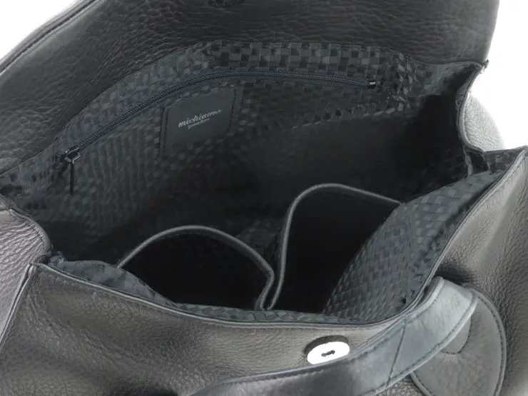 michiamo ミキアモ ソフトキップレザー 横型 ハンドバッグ ブラック