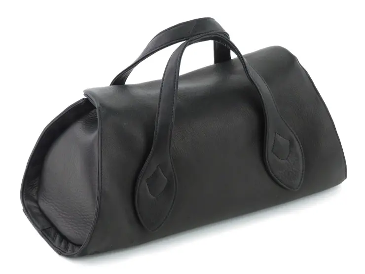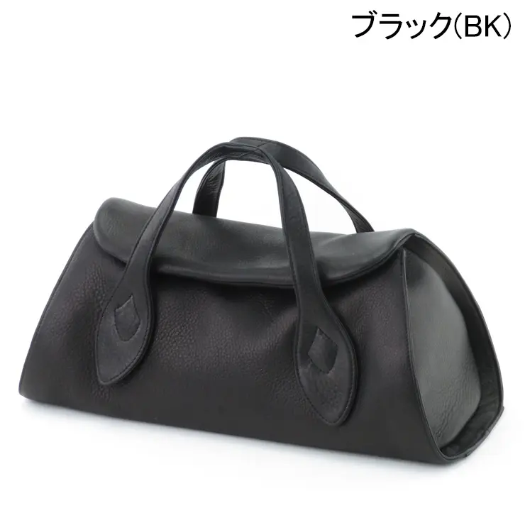 しっとり柔らかなソフトキップレザーが魅力、michiamo(ミキアモ)の横長ハンドバッグ。サイドが三角になったコロンとした横長シルエットが特徴で、装飾を省いたシンプルな黒のデザイン。横長フォルムで持ちやすく、冠婚葬祭やセレモニーなどフォーマルなシーンにも活躍する上質なハンドバッグです。
