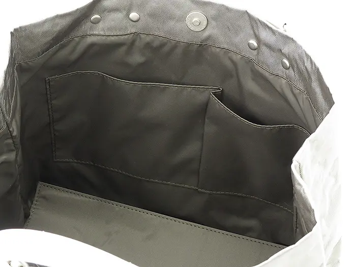 開閉はマグネット式で、さっと開け閉めできる快適な仕様。内ポケット付きで、スマホや鍵などの細かな荷物もすっきり整理できます。