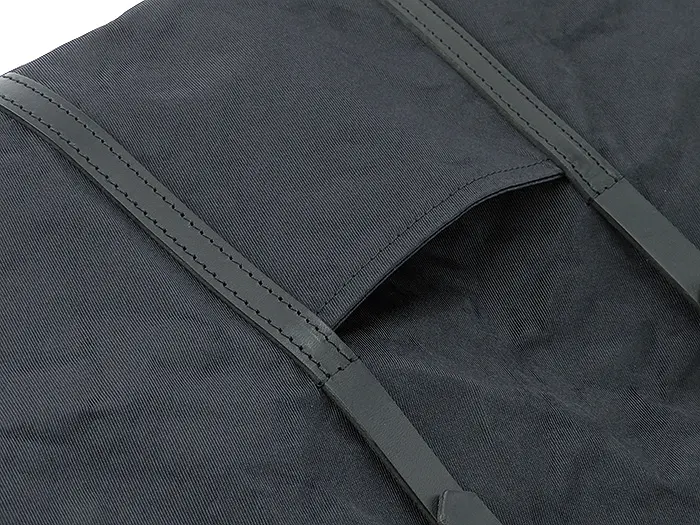 シャイニーなメタリックナイロンの裏側に薄くアルミを貼り合わせた、アルミボンディング素材を使用。ナイロンでありながら程よいハリがあり、軽く触れるだけで自然なシワ感が生まれるのが特徴です。使い込むほどにシワがやわらぎ、表情に深みが増していく経年変化も楽しめます。
