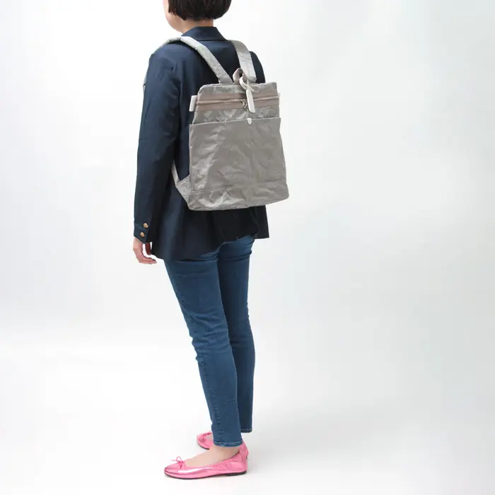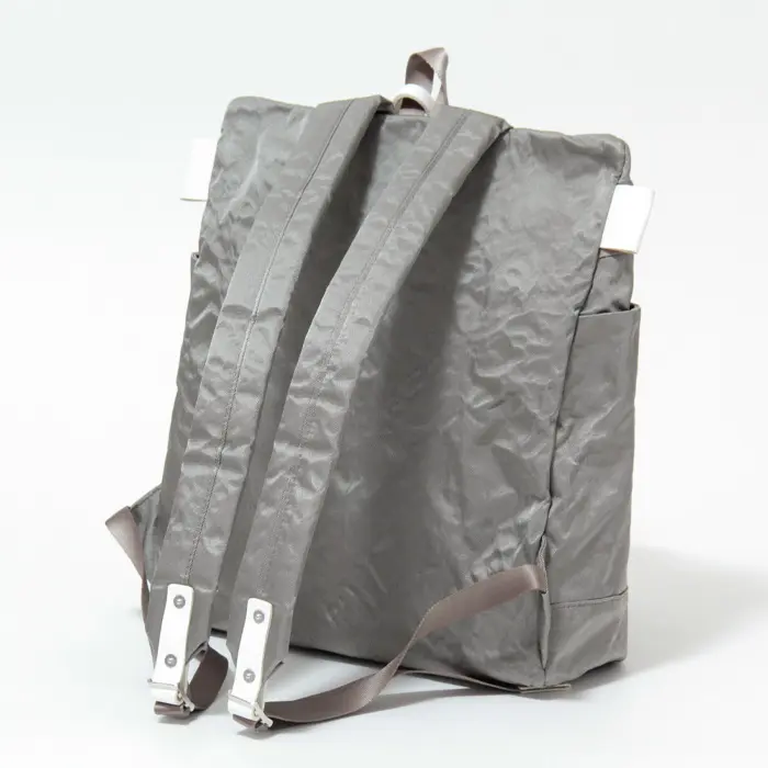 独特のシワとほのかなツヤが印象的な、BEAU DESSIN S.A.のアルミボンディング素材を使用したバックパック。シンプルな中に個性が宿る素材使いで、さっと背負うだけでこなれた雰囲気に仕上がります。