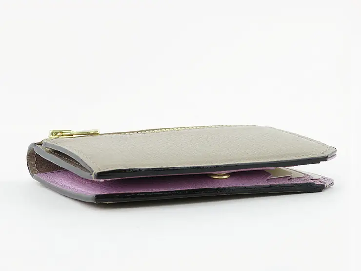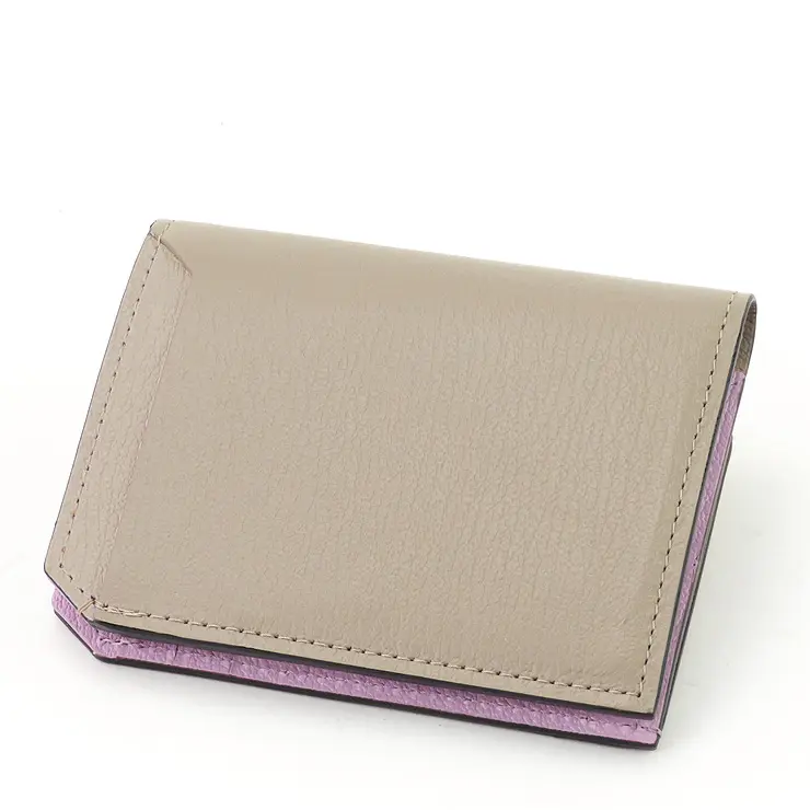 L'arcobaleno ラルコバレーノ ゴートレザー スマートカードウォレット BEIGE/LILLAC