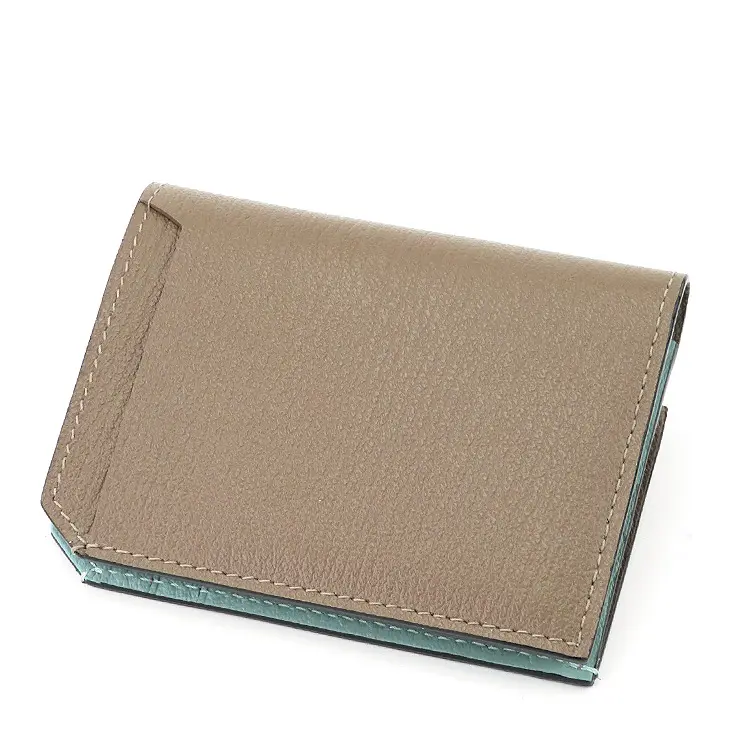 L'arcobaleno ラルコバレーノ ゴートレザー スマートカードウォレット GRAY/MINT