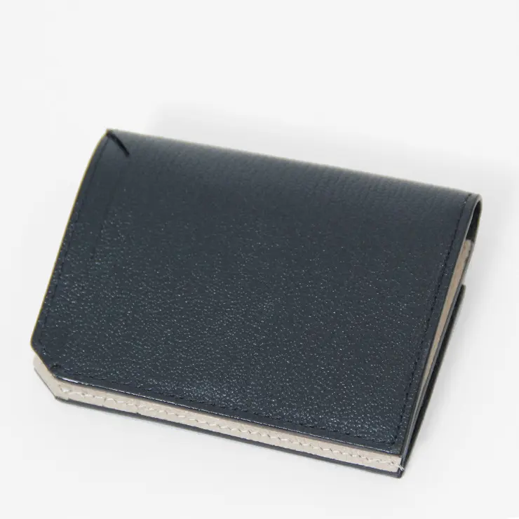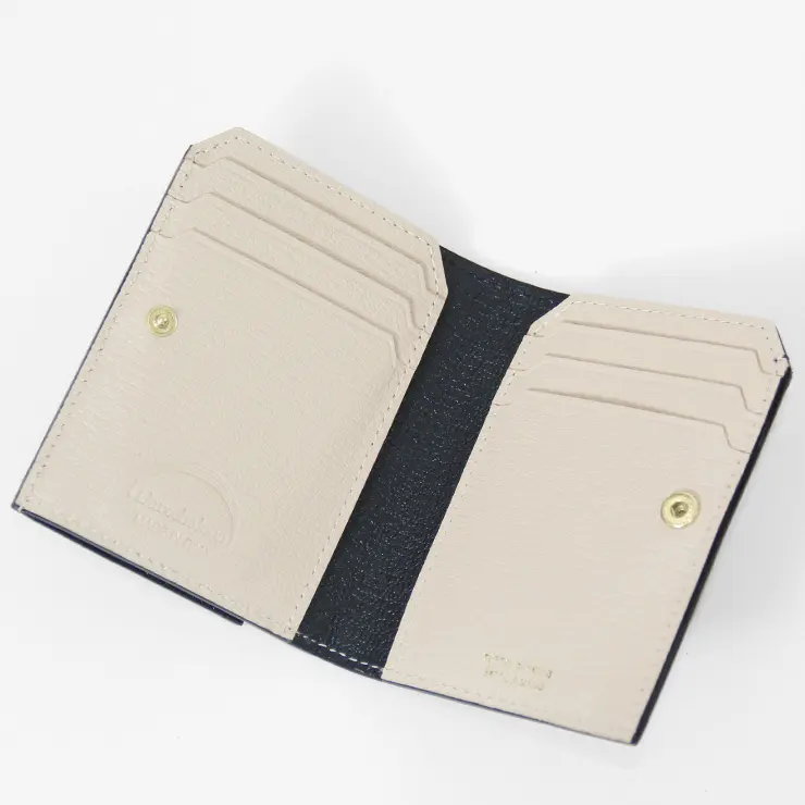 L'arcobaleno ラルコバレーノ ゴートレザー スマートカードウォレット NAVY/CREAM