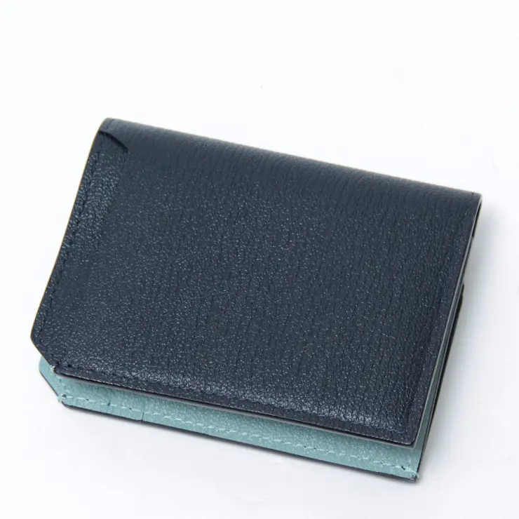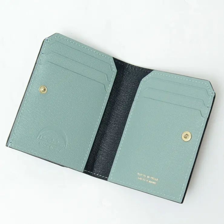 L'arcobaleno ラルコバレーノ ゴートレザー スマートカードウォレット NAVY/MINT