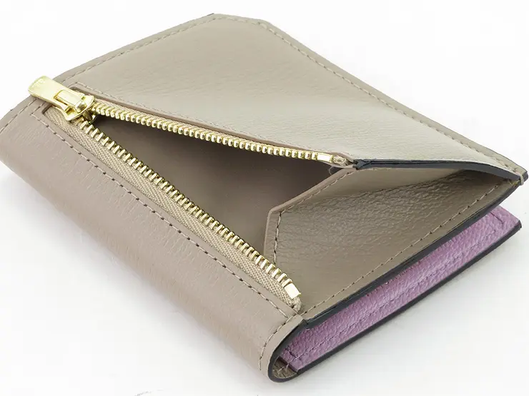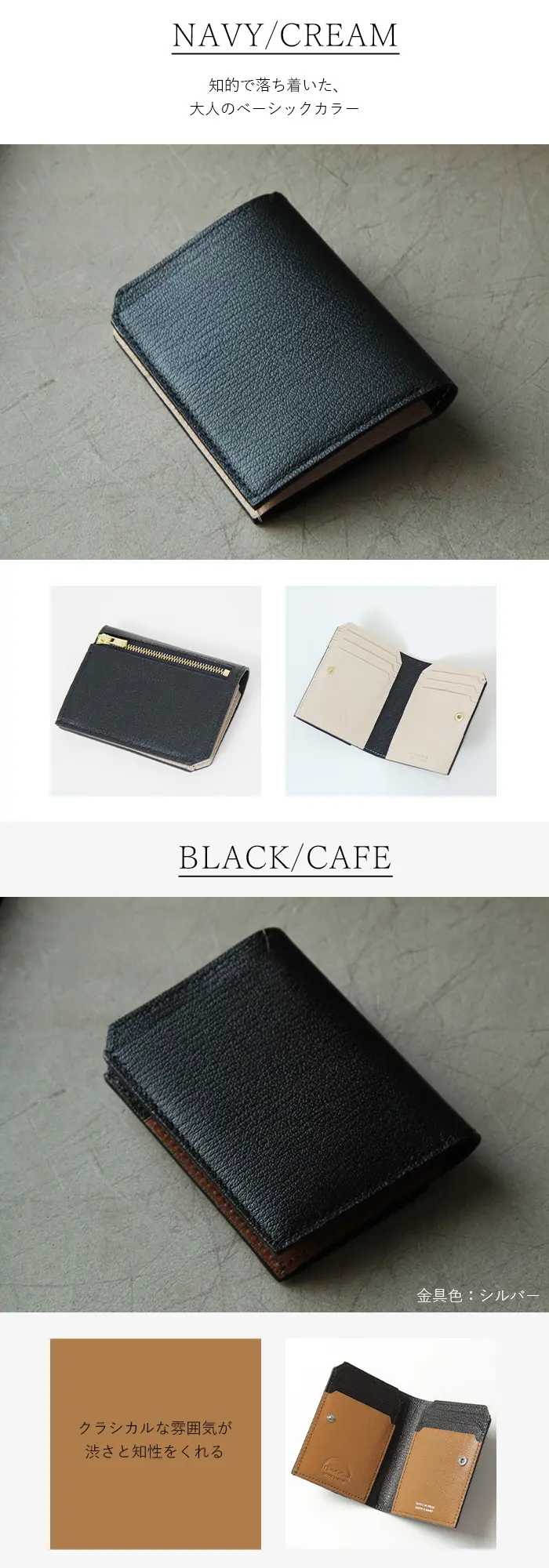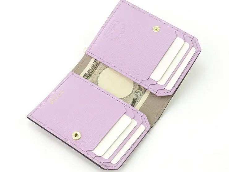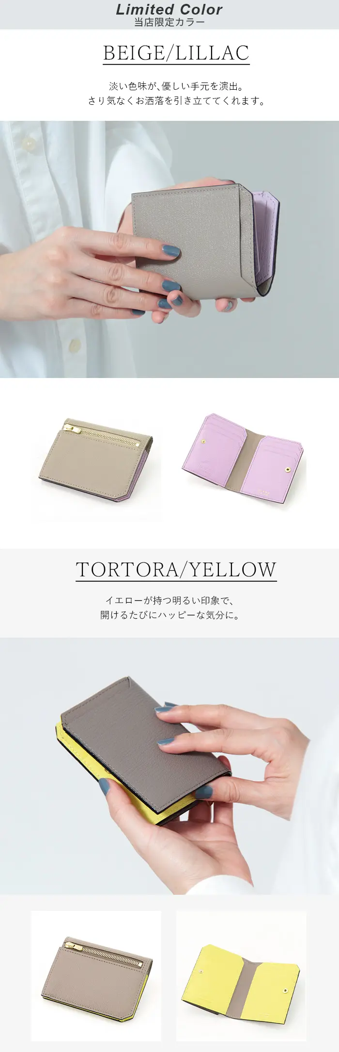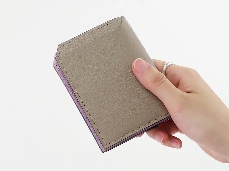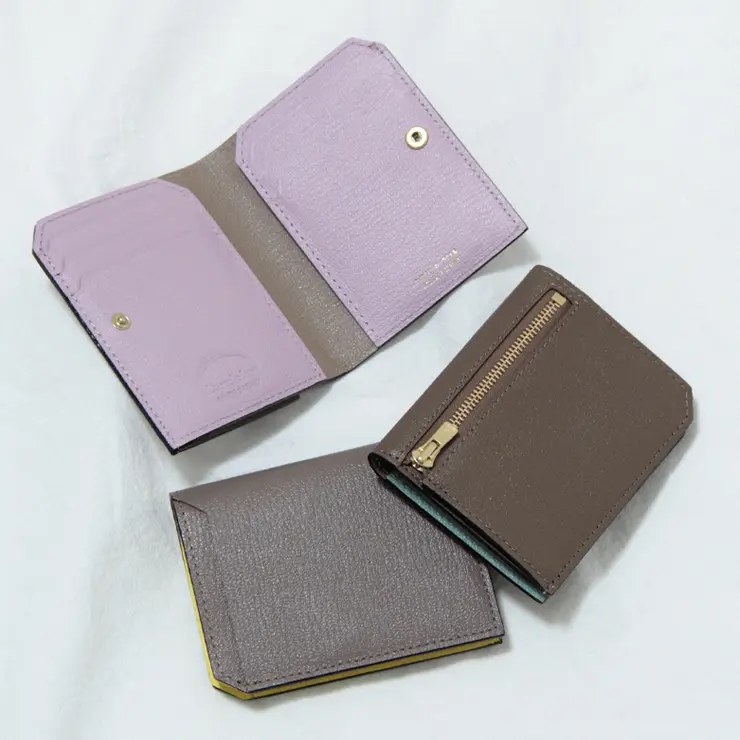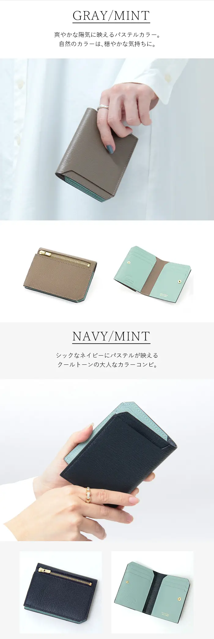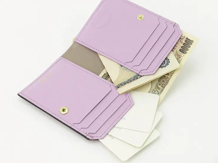 女性が片手でも持ちやすいスリムでコンパクトな二つ折りウォレット。