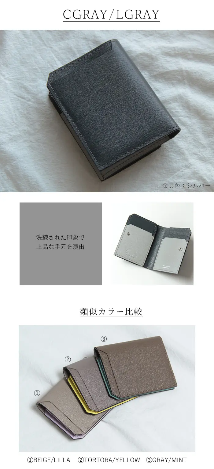 L'arcobaleno ラルコバレーノ ゴートレザー スマートカードウォレット CGRAY/LGRAY