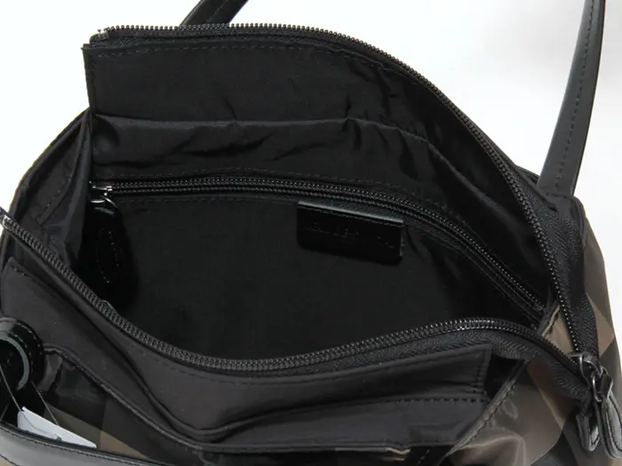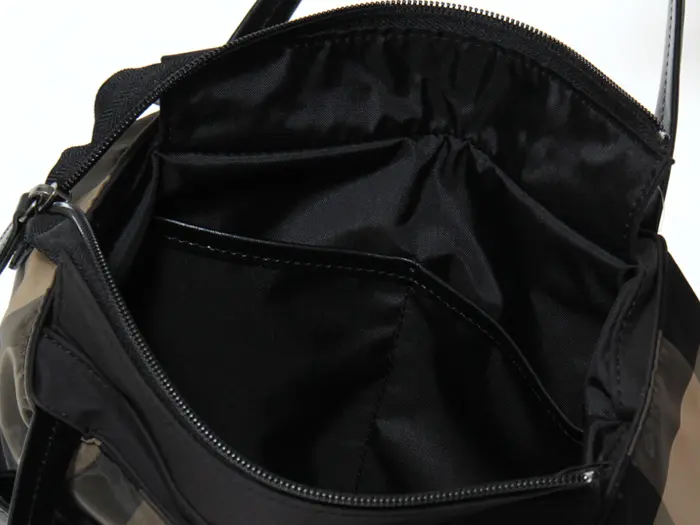 内側には複数のポケットを備え、スマホやエコバッグなどの小物もすっきり整理可能。ファスナーポケット付きなので、鍵などの大切な物の収納も安心です。