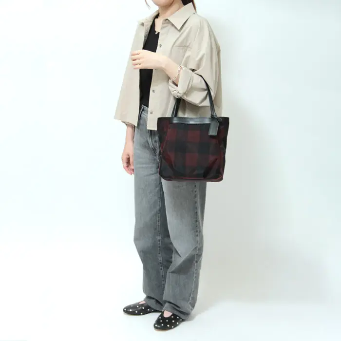 持ち手は程よい長さで、手持ちでも腕掛けでも自然に収まるバランス感。きちんと感のあるサイズなのでお仕事シーンにも対応し、普段のお出かけから通勤まで幅広く活躍します。
