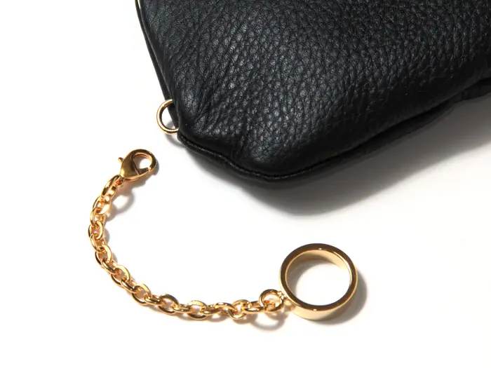 指輪のようなフォルムが印象的なリングチャームは、指を通して持てる仕様。クラッチ感覚で使えるのもポイントです。フック付きで簡単に取り外しができ、シーンやスタイルに合わせたアレンジが楽しめます。