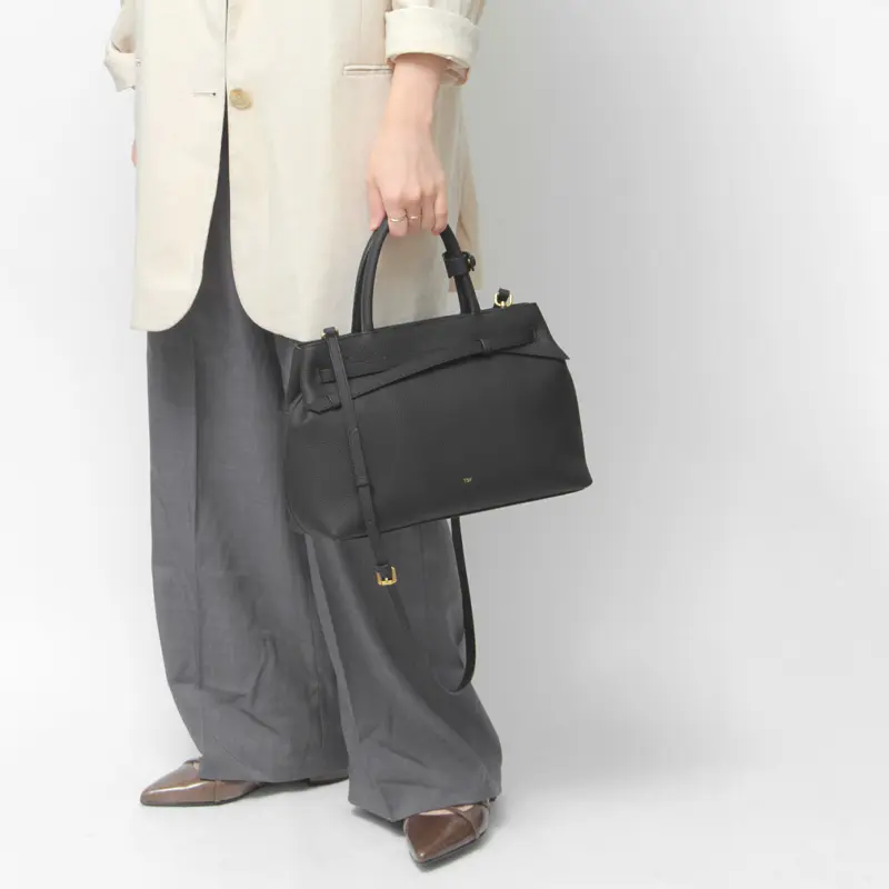 無駄を削ぎ落としたフォルムに、リボンのアクセントが映える洗練されたデザイン。 エレガントなスーツスタイルから、デニムなどのカジュアルな装いまで、どんなコーディネートも格上げしてくれます。 長さ調節・取り外しが可能なショルダーストラップ付き。両手が自由に使えるスタイルは、出張や旅行など、アクティブに動きたい日にも最適です。