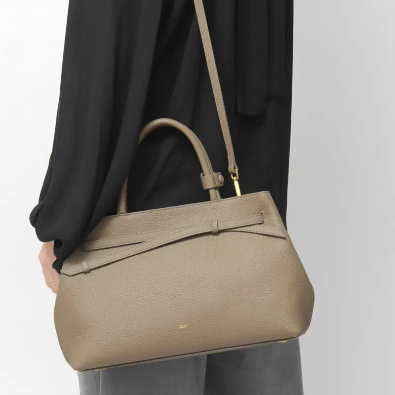 ラシカルなクロスリボンが気品を放つ"TOV トーヴ"のアイコン、MIMI(ミミ)シリーズ。 待望の新作「MIMI TOTE」のSサイズは、上質なオールレザーを贅沢に使用したミニマルな佇まいが魅力です。 卒入学式などのセレモニーシーンはもちろん、斜めがけができる2WAY仕様で、日常の外出から通勤までシーンを問わず品良く寄り添います。