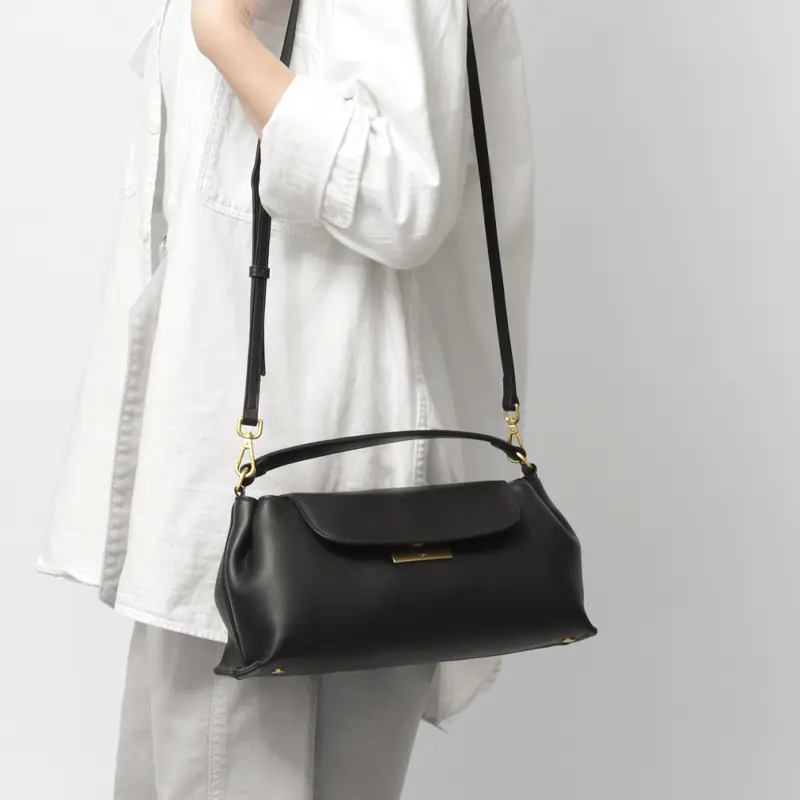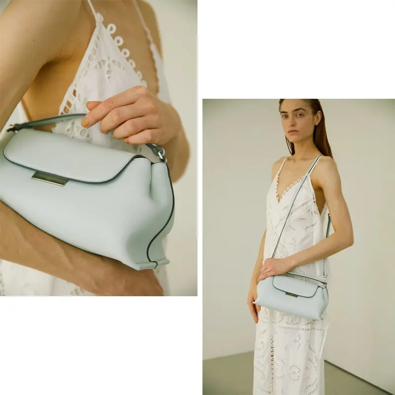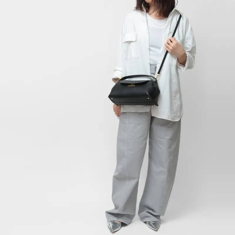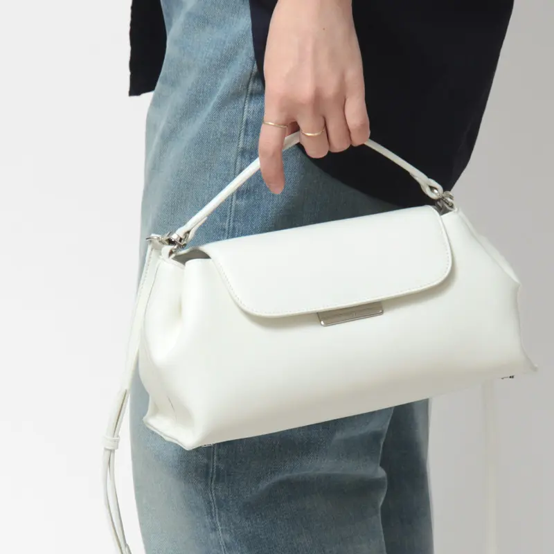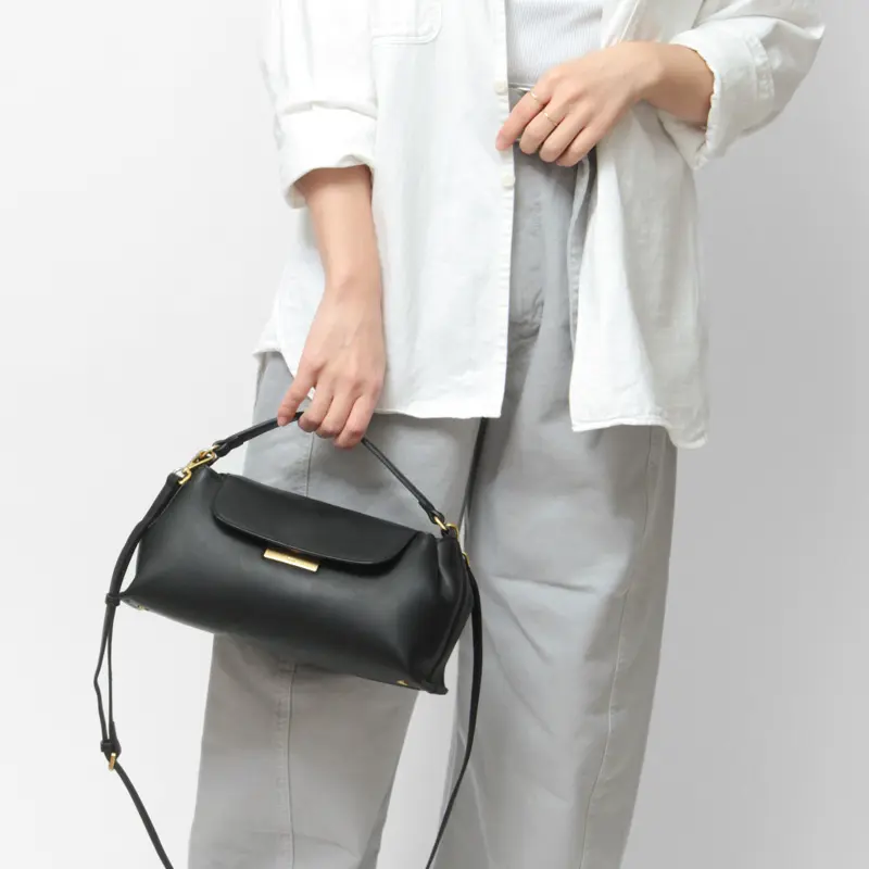 スフレのような柔らかなフォルムが魅力の2wayバッグ。シンプルなデザインだからこそ、エレガントなスーツスタイルから、デニムなどのカジュアルな装いまで、どんなコーディネートにも気品を添えてくれます。長さ調節・取り外し可能なショルダーストラップ付きで、シーンに合わせたスタイルチェンジもスムーズ。両手が自由に使える斜めがけスタイルなら、通勤や旅行などアクティブに動きたい日もスマートにお使いいただけます。