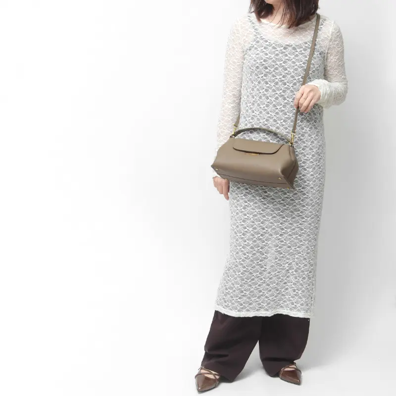 心地よく手に馴染むふっくらフォルムが特徴の「souffl(スフレ)」シリーズのSサイズ。オールレザー仕様ながら、かっちりしすぎない絶妙な抜け感が、大人の女性にぴったりです。日常の必需品をスマートに持ち歩ける、使い勝手の良いサイズ感。卒入学式などのセレモニーシーンはもちろん、斜めがけができる2WAY仕様で、日常の外出から通勤までシーンを問わず品良く寄り添います。