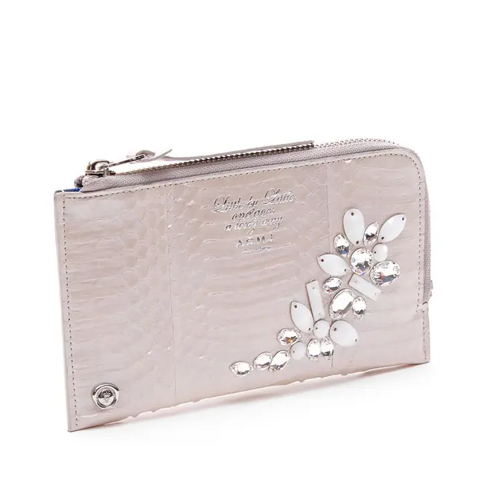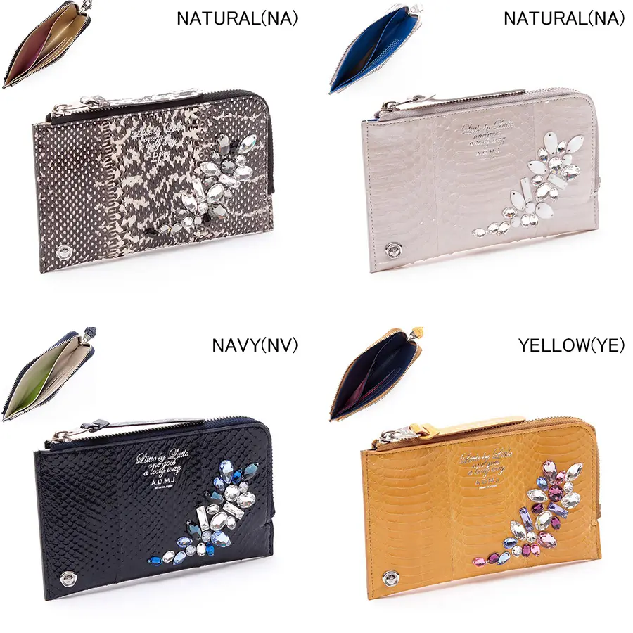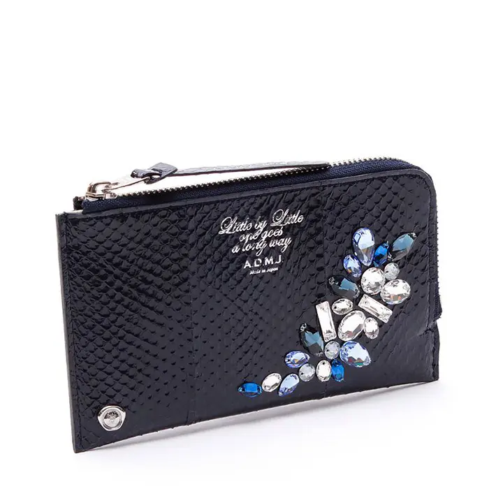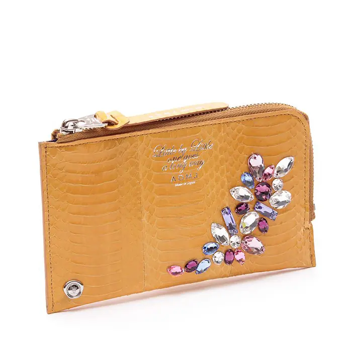 ADMJ エーディーエムジェイ レディース エーディーエムジェイ アクセソワ 蛇革 スネークレザー クリスタルソーイングオーガナイザーパース 本革 薄い スリム パイソン柄 ヘビ柄 品番:23ss06004