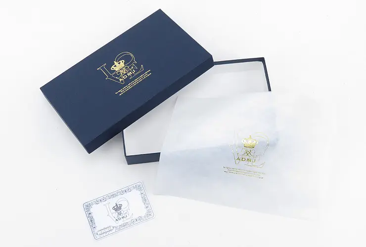 ギャランティカード付きで、専用の保存袋とボックスに入れてお届けいたしますので、プレゼントにも安心してお選びいただけます。