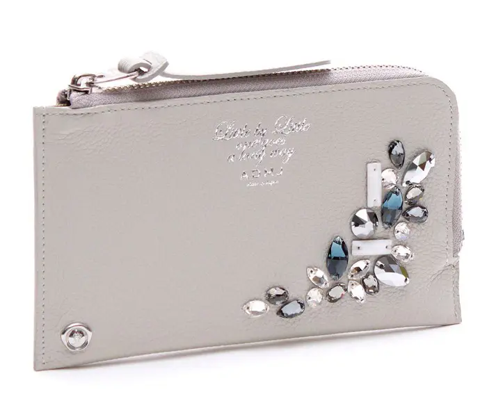 ADMJ 財布 長財布 エーディーエムジェイ A.D.M.J. エーディーエムジェー クリスタル付オーガナイザーパース 牛革 子牛革 クリスタル マルチポーチ 品番:24AW06009