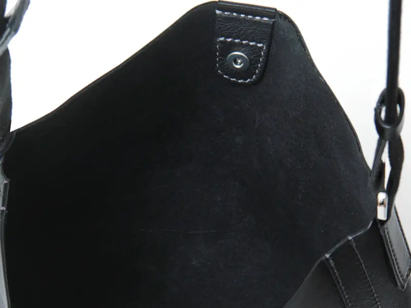 芯材を使わず、革本来の柔らかさを活かして特に軽量な一枚革で仕立てたMOUSSE LIGHTシュリンクレザーを使用。しなやかで少しドライなタッチが特徴で、身体に自然と沿う軽やかな持ち心地を叶えます。シュリンク加工による細かなシボが表情に奥行きを与え、レザーでありながら力の抜けたこなれ感を演出。使い込むほどに風合いが増し、大人のスタイリングに馴染む上質な素材です。