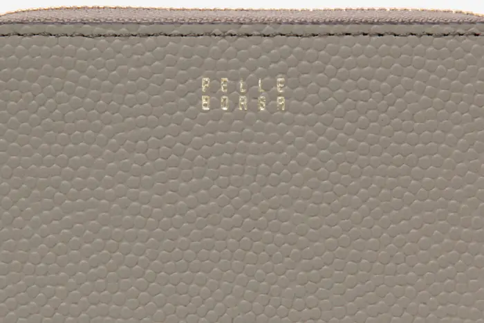 ペレボルサオリジナル「フィーネグッズ」シリーズで使用するキャビアシボレザーは、バスケットボールの型押しを応用した小粒の型押し加工が特徴です。つぶつぶとした革の表情がユニークで、他にはない個性を演出。バイカラーのスタイリッシュなデザインがさらに魅力を引き立てます。