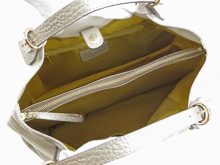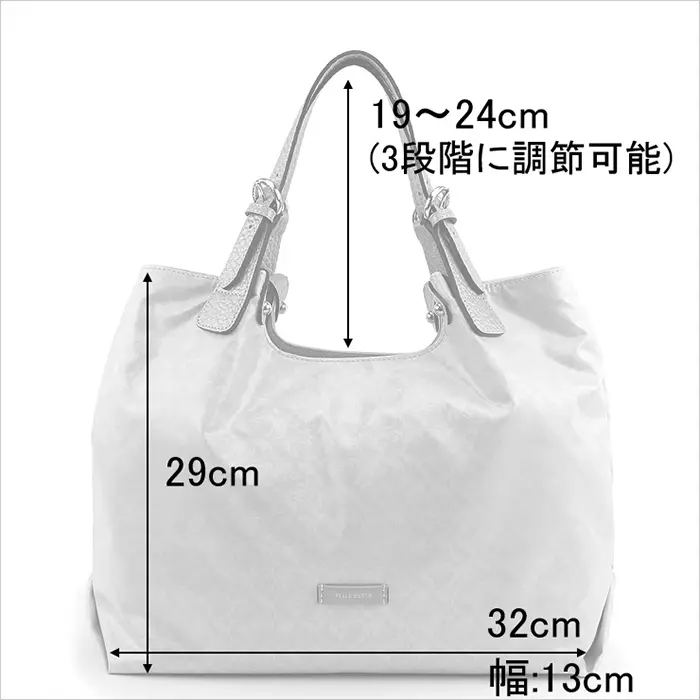 軽くて機能的なPELLE BORSA/ペレボルサの人気シリーズ"alive アライブ"のファブリックに、パール加工を施した"Alive Pearl アライブパール"は、上品な輝きを放つエレガントさをプラスしたシリーズです。特殊コーティングが施されたボディと、撥水加工が施された牛革で、突然の雨にも安心してお持ちいただけます。A4が収納可能な実用的なサイズで、普段使いから通勤まで様々なシーンで活躍します。