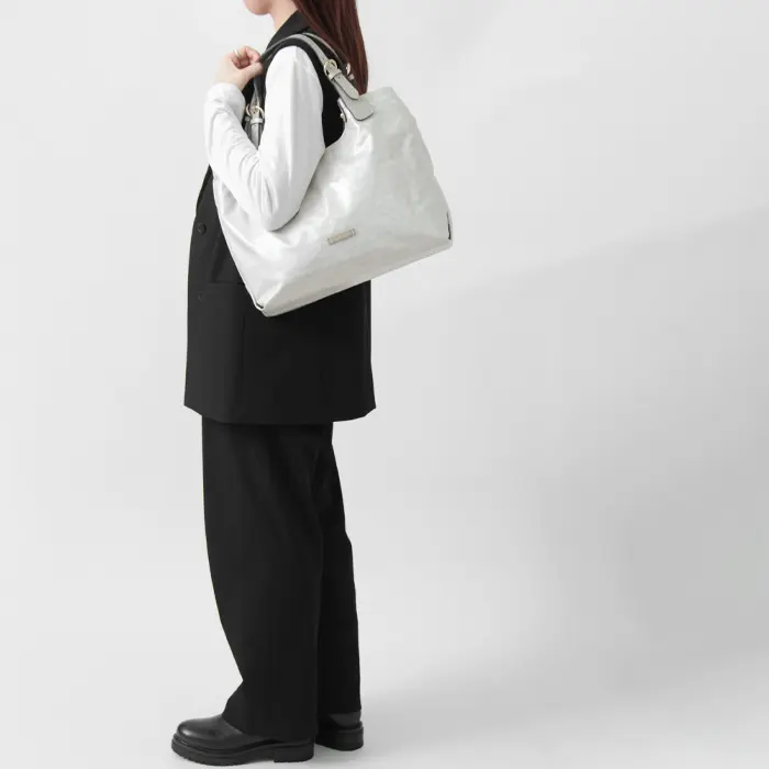 軽量で柔らかな素材感ながら、底板を内蔵しているため型崩れしにくい設計。荷物を入れても美しいフォルムを保ち、安心してお使いいただけます。
