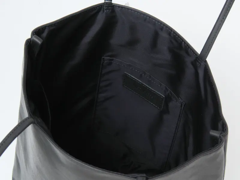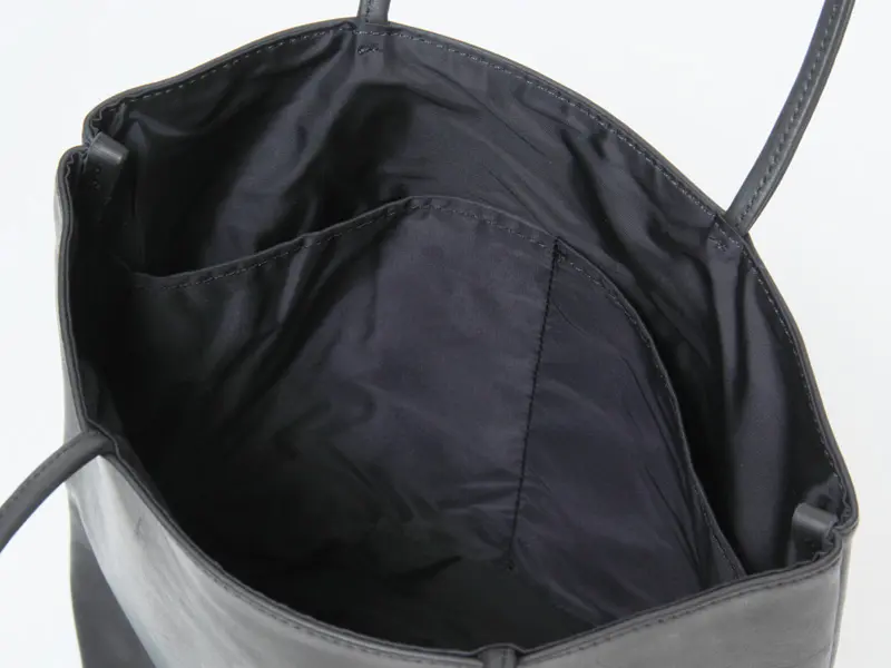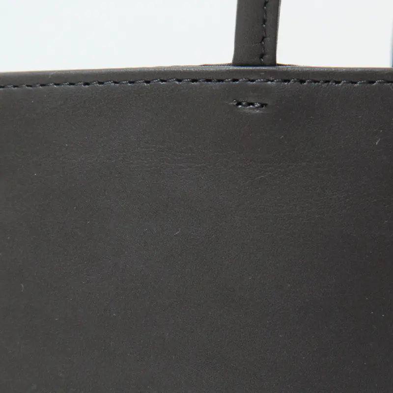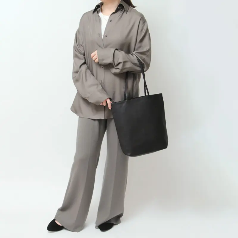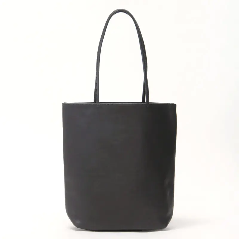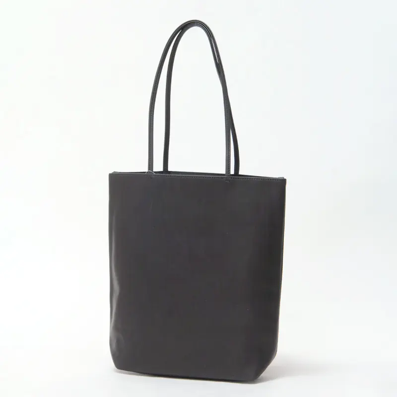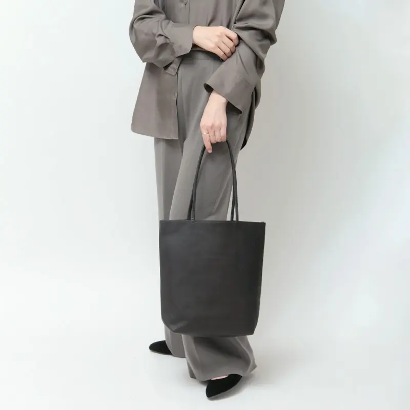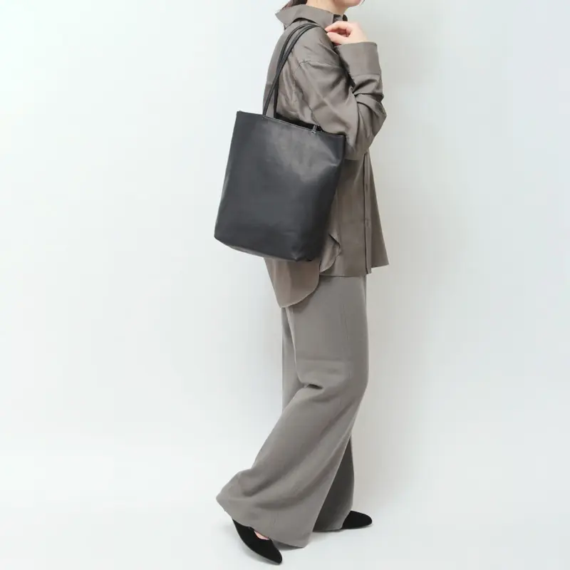 ゆったりと肩掛けできるレザートートバッグ。すっきりとした佇まいの縦型デザインに、細めのレザーハンドルがさりげない上品さを添えます。通勤からデイリーまで、装いを選ばず活躍するひと品です。