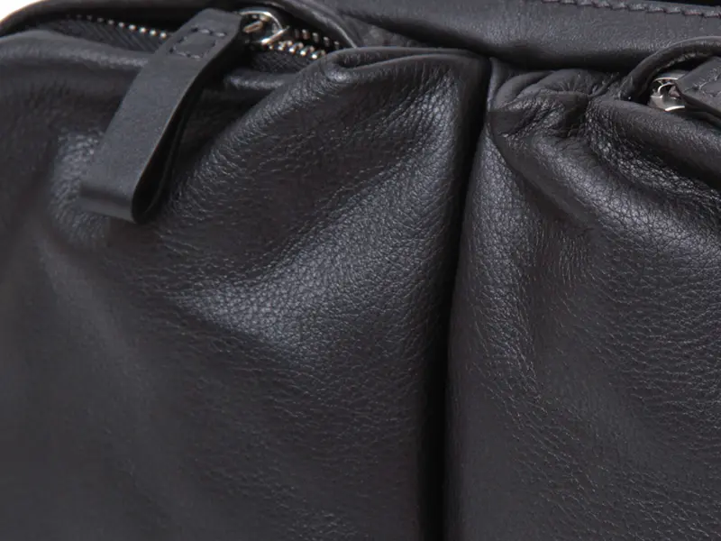 SPUGNA(スプーニャ)は、Daniel&Bobが提案する新しいスムースレザー。その名の通り、スポンジを思わせるふんわりとした柔らかさと、しっとりと手に吸い付くようなタッチが特徴です。ソフトな質感でありながら、適度な厚みとコシを備えており、立体感のあるフォルムを美しくキープ。レザーならではの上質感を残しつつ、ラフに扱える気軽さも兼ね備えています。カジュアルな装いにも自然に溶け込み、使うほどに馴染んでいく表情の変化も魅力。