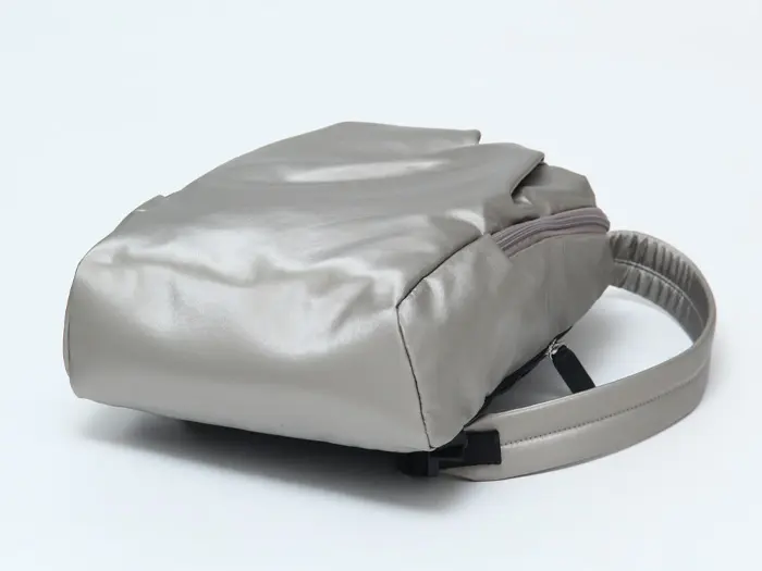 パール加工を施した上品な風合い。本体生地はウレタンコーティングにより防水性があり、汚れが付いても水拭きで簡単にケアできるため、きれいな状態を保ちやすいのが魅力です。