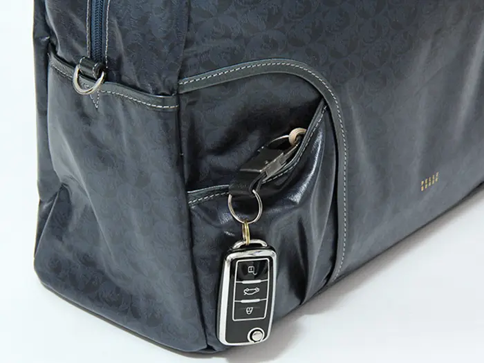 正面外側には両サイドにオープンポケットを備え、メイン収納を開けずに取り出したいエコバッグやICカードの収納に便利。鍵やICカードなど、落としたくない小物を繋げられるループも1つ付いています。