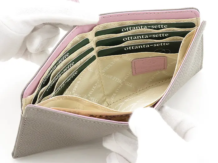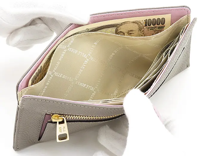 裏地には抗菌防臭加工を施したペレボルサオリジナルジャガードを使用。公的検査機関において良好な検査結果を得ており、毎日使うお財布として安心感のある仕上がりです。