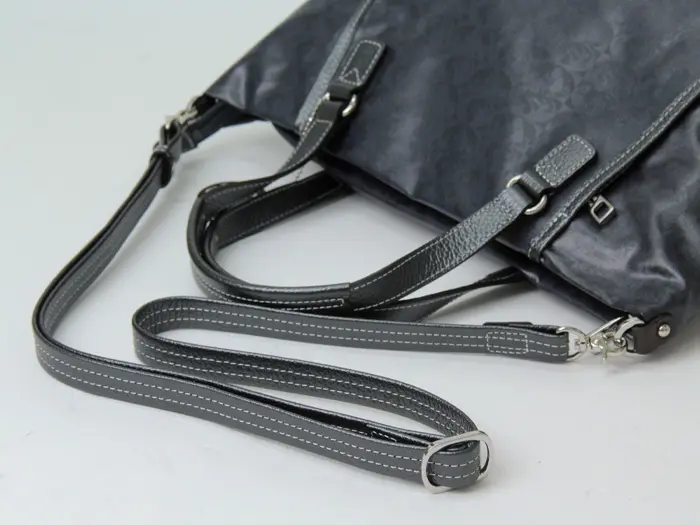 パール加工を施した牛革のショルダーストラップを採用。取り外し・長さ調節が可能で、斜め掛けスタイルにも対応します。クロスボディで持てば両手が空くため、通勤シーンやアクティブに動きたい日にも快適にお使いいただけます。
