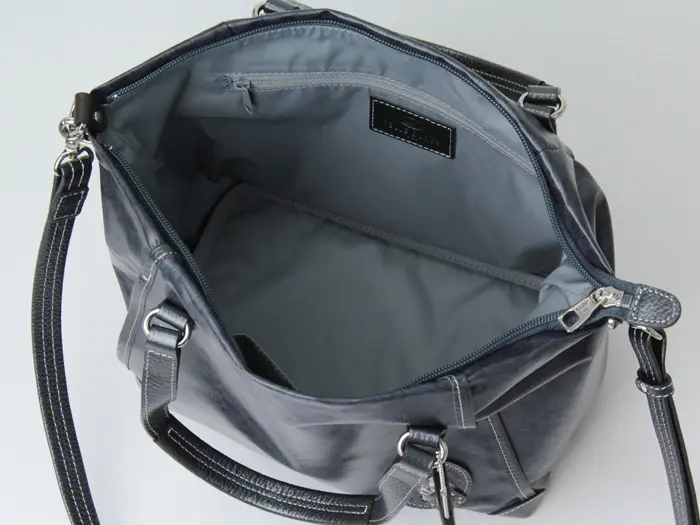開閉は中身が見えにくく、防犯面でも安心なファスナー仕様。