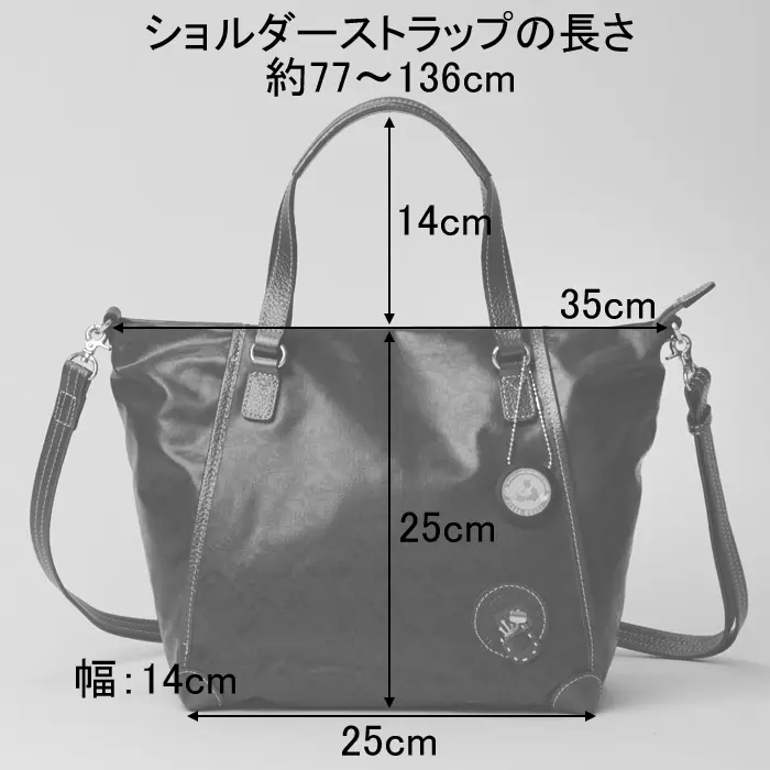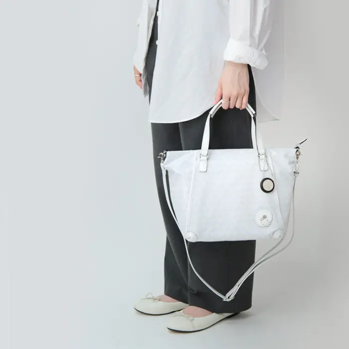 こちらはトートとショルダーの2通りで使える、日常使いにちょうど良い2wayバッグ。必需品にプラスαまでしっかり収まる収納力で、お出かけから通勤まで幅広いシーンで活躍します。