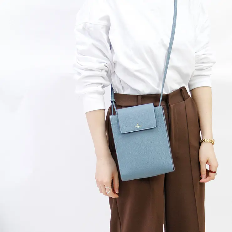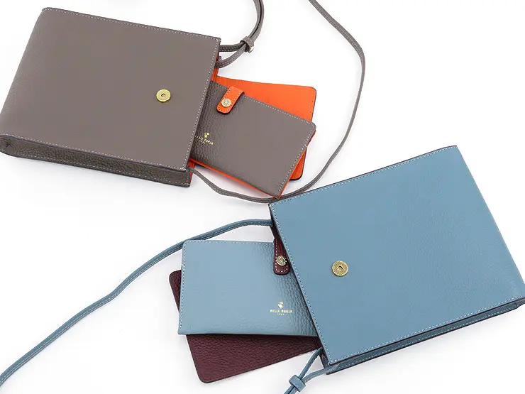 同シリーズのスリム財布(品番:4707)とカラーを揃え、ちょうど収まるサイズ感で仕立てたショルダーバッグ。バッグと財布を同色で統一するのはもちろん、あえて配色を変えて持つのもセンス良く決まります。