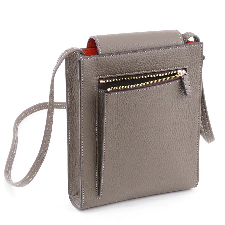 縦長のスクエアフォルムが洗練された印象のシュリンクレザーポシェット。無駄を省いたデザインだからこそ、丁寧な仕立ての良さが際立ち、使いやすさも実感できる一品です。