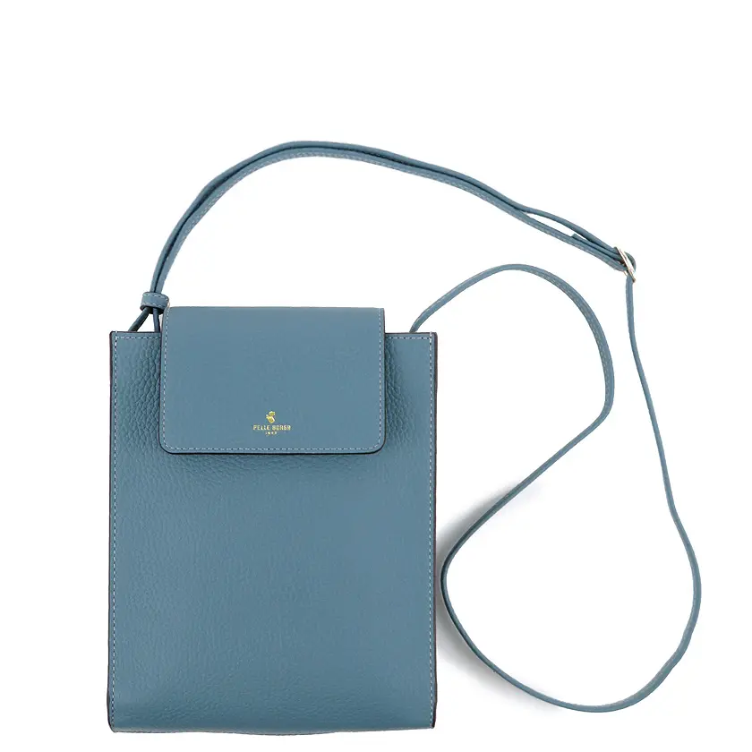 PELLE BORSA ペレボルサ Reinette レネット シュリンクレザー スクエアーポシェット ブルーグレー