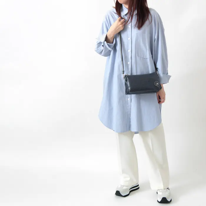 ショルダーストラップは長さ調整が可能で、斜め掛け・肩掛けのどちらでも使用できます。細身で上品なデザインながら、袋縫い仕様により肩への負担を軽減。ストラップは取り外しでき、バッグインバッグとしてもお使いいただけます。