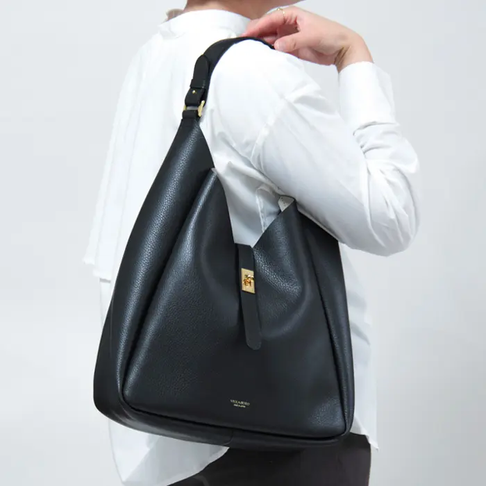 VIOLAd’ORO(ヴィオラドーロ)「TRERO(トレロ)」シリーズのワンショルダーバッグ。上質なイタリアンWフェイスレザーを使用し、素材の良さが引き立つシンプルなデザインに仕上げました。柔らかくしなやかな革は使うほどに手に馴染み、上品なシボの表情が大人の装いに自然と溶け込みます。