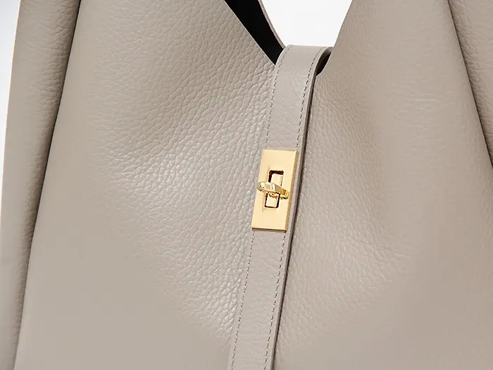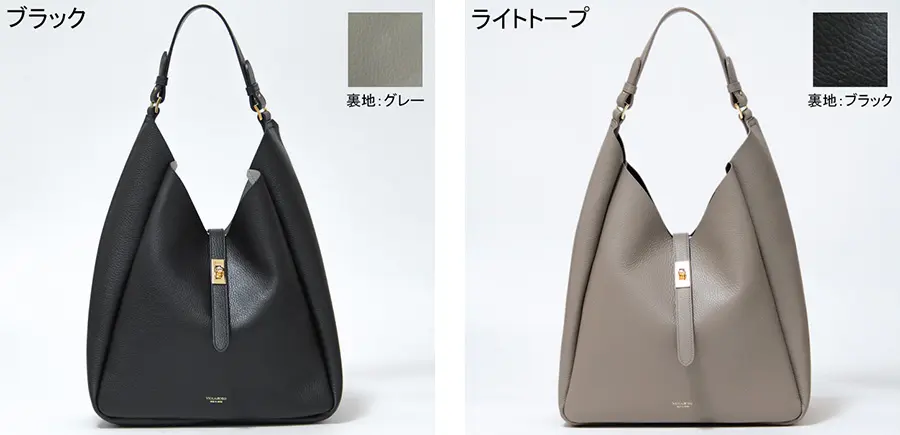 シボ型押しを施した上質なイタリアンレザーを使用。細かなシボが革表面を美しく彩り、傷が目立ちにくいのも嬉しいポイントです。しなやかで柔らかな風合いのレザーは、持つたびに心地よく手に馴染みます。裏地をあえて施さず、内側にカラーをのせたダブルフェイス仕様にすることで、軽やかさを実現。上品な素材感と軽さを兼ね備えた、大人に寄り添うレザーバッグです。