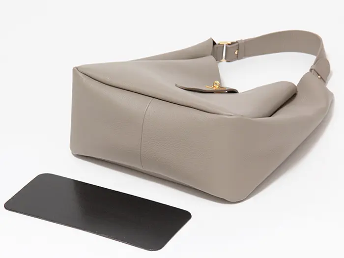 内側には取り外し可能な底板付き。マチに安定感があり、荷物を入れてもバッグのフォルムを崩しにくく、すっきりとした美しいシルエットをキープします。