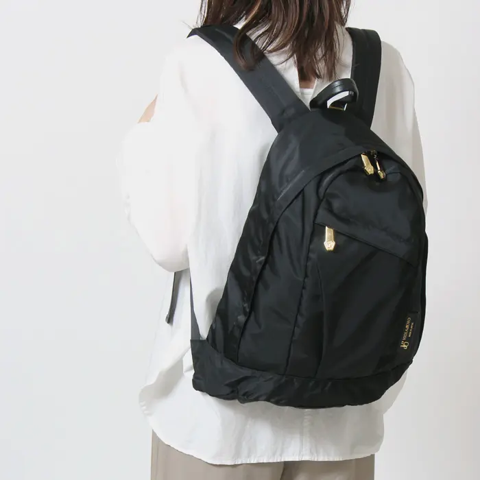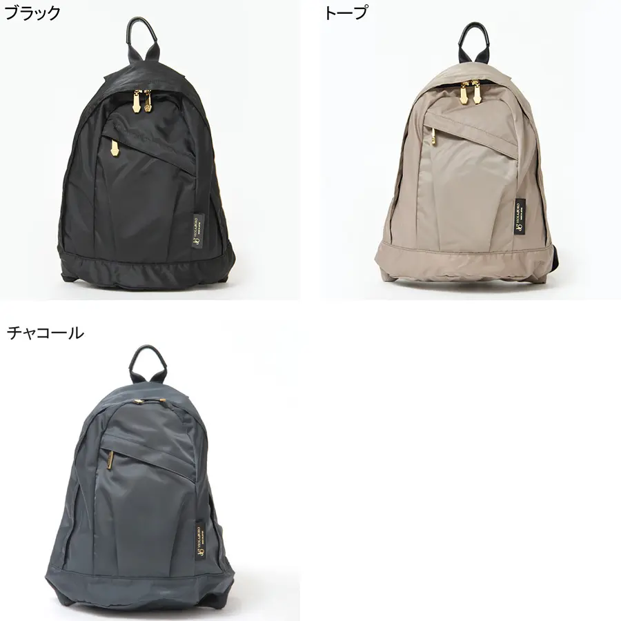 ナイロンの光沢感やすっきりとしたシルエット、ゴールドの金具使いが上品な"VIOLAd'ORO ヴィオラドーロ"のリュック。カジュアルでアクティブな印象のリュックサックも女性らしく、きれいめにも合うのでお仕事スタイルにもぴったりです。A4サイズも収まる大容量で、通勤バッグからマザーズバッグ、旅行など幅広いシーンに最適です。