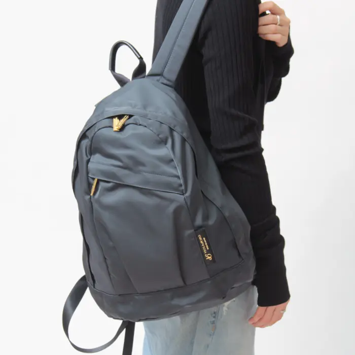 ツヤ感のあるナイロン生地は柔らかく、くしゅっとした表情が軽やかさとこなれた雰囲気を演出します。弱撥水効果があるので、少々の雨にも対応できます。タウンユースからレジャーシーンまで幅広く活躍してくれます。