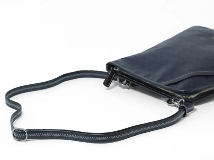 本体生地の表面にはウレタン加工を施しているため防水性があり、汚れが付いた際は水拭きでお手入れしていただけます。防水スプレーは使用しても問題ありませんが、素材の特性上、基本的には不要です。付属の革部分が汚れた場合は、一般的な革用クリームでお手入れしてください。保管時は通気性の良い布袋、または不織布袋に入れ、空気の流れの良い場所で保管することをおすすめします。