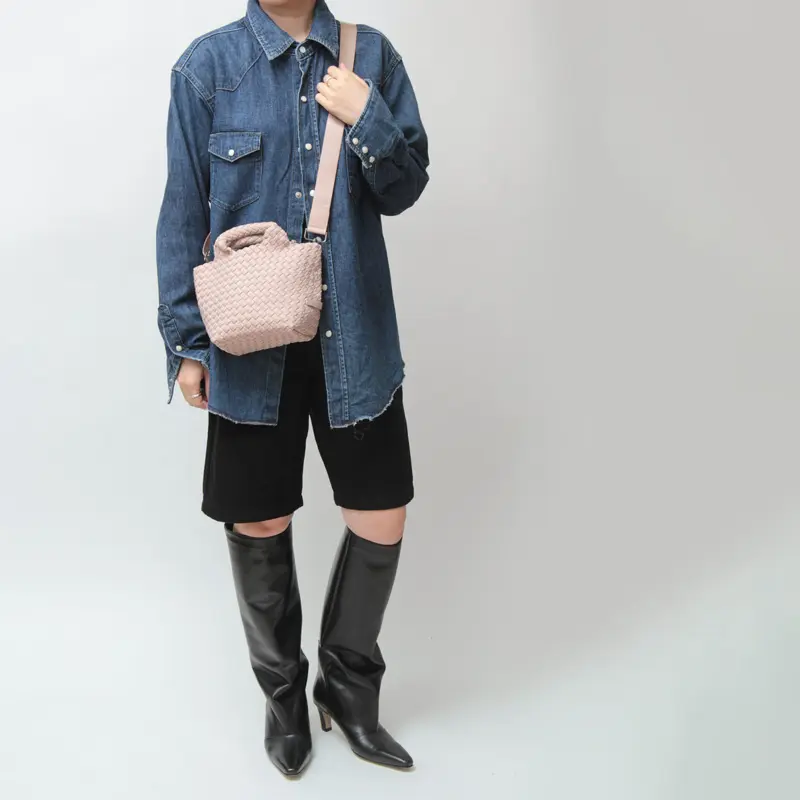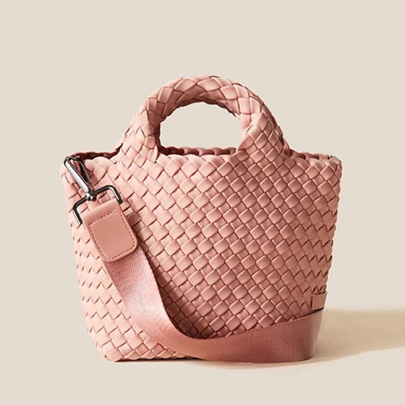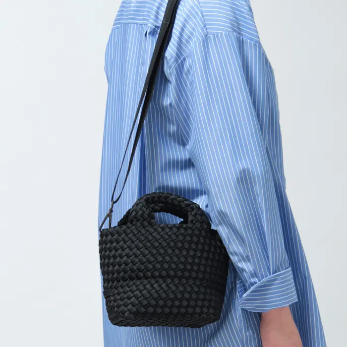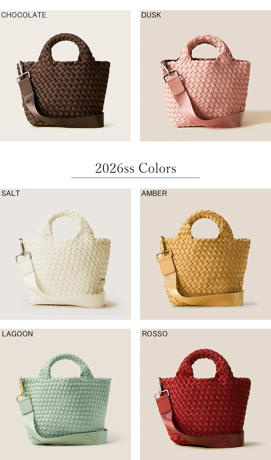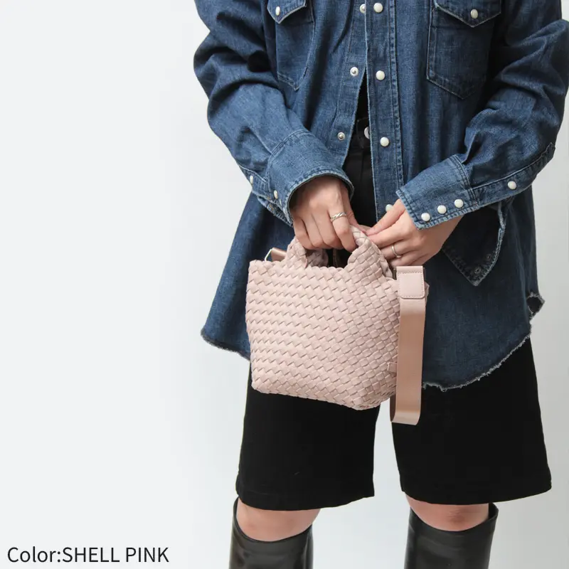 軽くて丈夫な弾力のある高密度フォーム素材を使用し、女性のライフスタイルに寄り添ったバッグを展開するNY発のバッグブランド"Naghedi/ナゲティ"。ダイビングスーツ等にも使われる機能性素材を丁寧に編み込んだメッシュ仕様のトートバッグ。取り外し可能なショルダーベルトを備えた2WAY仕様。長財布や必要最低限の荷物が収まりポケット感覚でお持ちいただけます。シーンやコーデを選ばないテイストは、幅広い年代にオススメです。