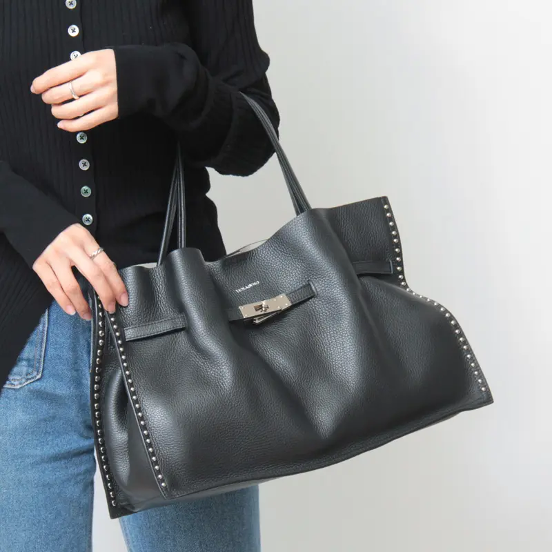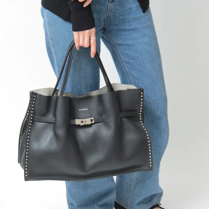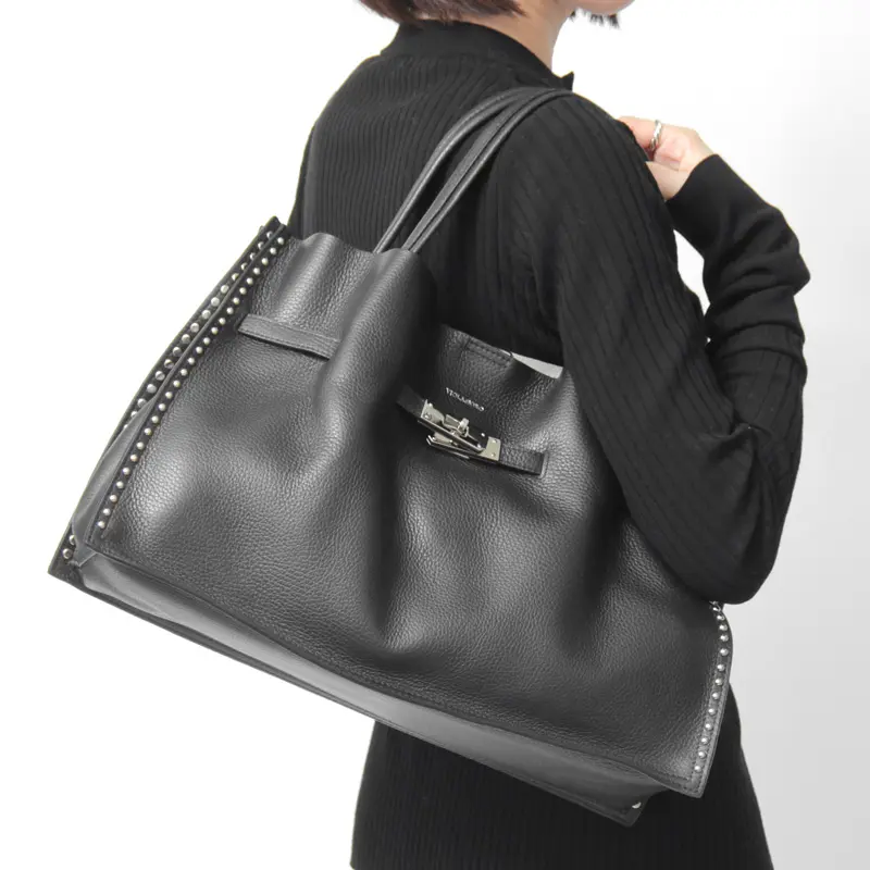 贅沢な本革とスタッズのトート