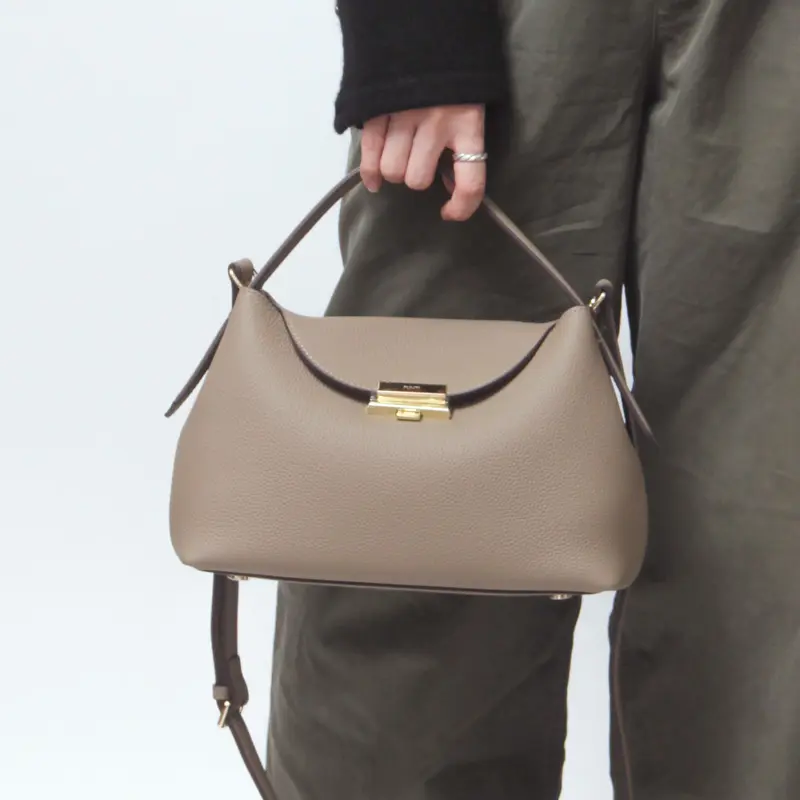 上品な佇まいと機能性を兼ね備えたワンハンドルバッグ。開閉しやすいオリジナルのフラップ金具が目を引き、斜めがけできるストラップ付きで実用性も抜群。卒入学式などのセレモニーにはもちろん、デニムスタイルに合わせた抜け感のあるコーディネートにもマッチ。大人のライフスタイルに寄り添う、品のある2WAYバッグです。
