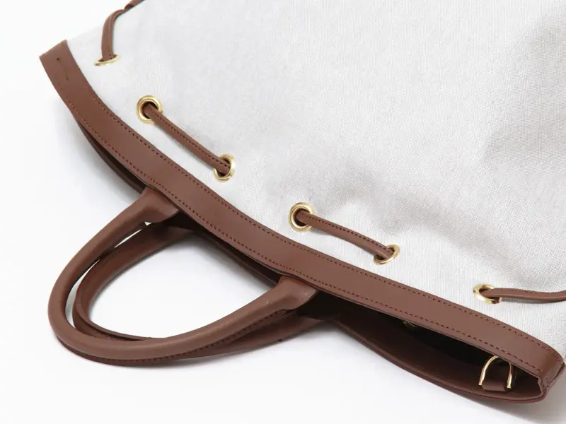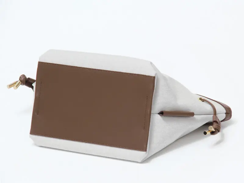 底面にレザーを使用することで、キャンバスバッグ特有のラフさを抑え、きれいめスタイルにも自然に馴染む仕上がりに。