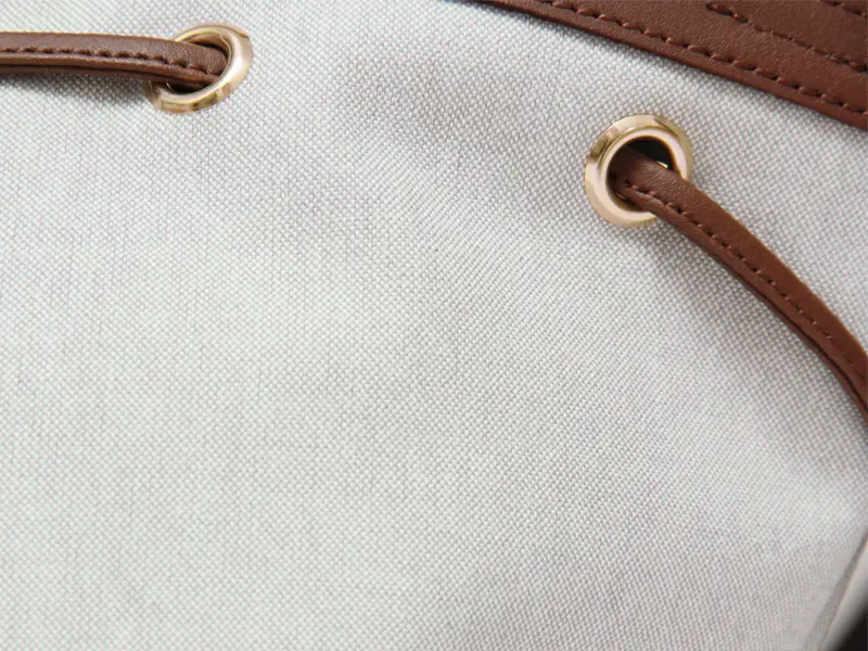 コットンとリサイクルナイロンを組み合わせた、VIOLAd'OROならではのサスティナブルキャンバス素材を使用。コットンのナチュラルな風合いに、ナイロン特有の上品な光沢とシャリ感を加えることで、目の細かい美しい表情に仕上げています。程よくネップを残した生地感は、ヴィンテージライクでありながらもカジュアルになりすぎず、大人の装いに自然と馴染みます。通常のキャンバスに比べてシワになりにくく、きれいな佇まいをキープできるのも魅力。耐久性としなやかさを兼ね備え、撥水加工も施されているため、デイリー使いから急な天候変化まで安心してお使いいただけます。